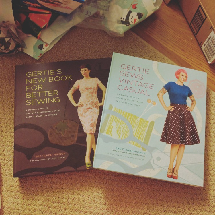 One of my favorites is Gretchen Hirsch. Her retro style and approachability combined with her clear deep knowledge and love of construction I find irresistible. Hers is one of my favorite Instagram feeds. So imagine my delight when it turned out that two of her books were waiting for me under the tree! I’ve spent much of the day reading and flipping through them, imagining the things I will make, the amazing vintage-style clothes I will be able to wear!